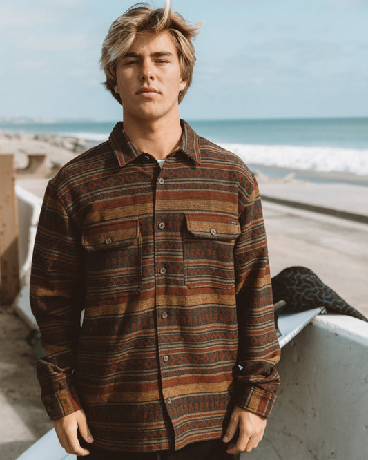 Offshore Jacquard Long Sleeve Flannel Shirt - Brick