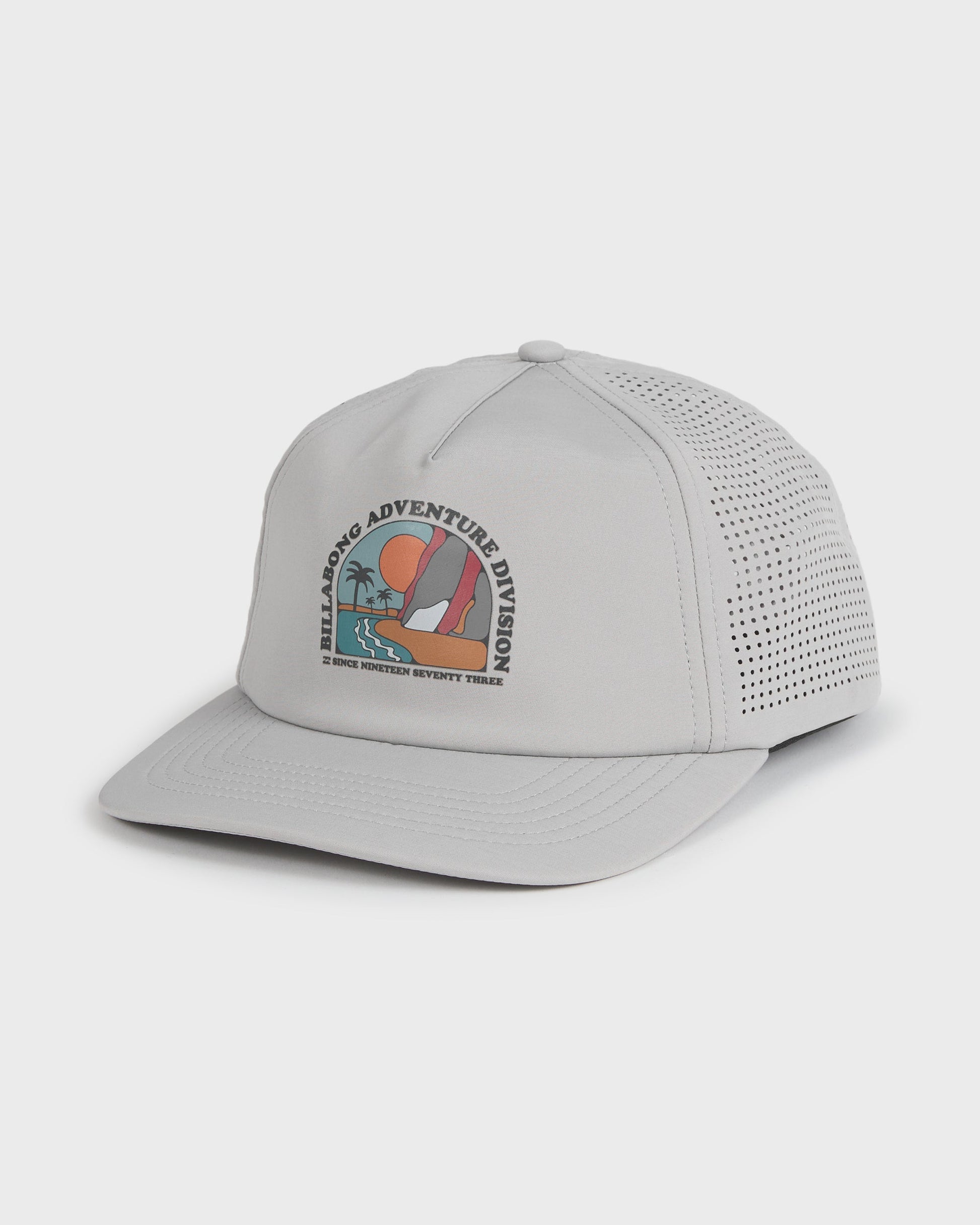 Our water-ready trucker hat keeps you cool with laser-cut ventilation and submersible Surftrek fabric. The medium-profile, unstructured design features seasonal artwork, while an adjustable snap ensures your perfect fit. Featured here in the Gray colorway.