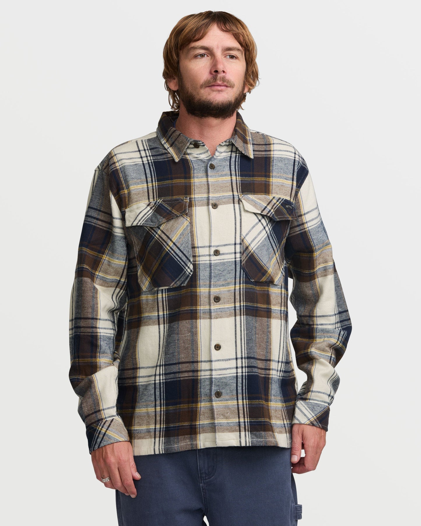 Get wild in our Billabong Bad Dog Flannel Shirt. Yarn-dyed plaid patterns this regular-fit, cotton-elastane flannel with chest pocket and straight hem for laid-back edge. Garment-washed for the perfect finish. Featured here in the Silver colorway.