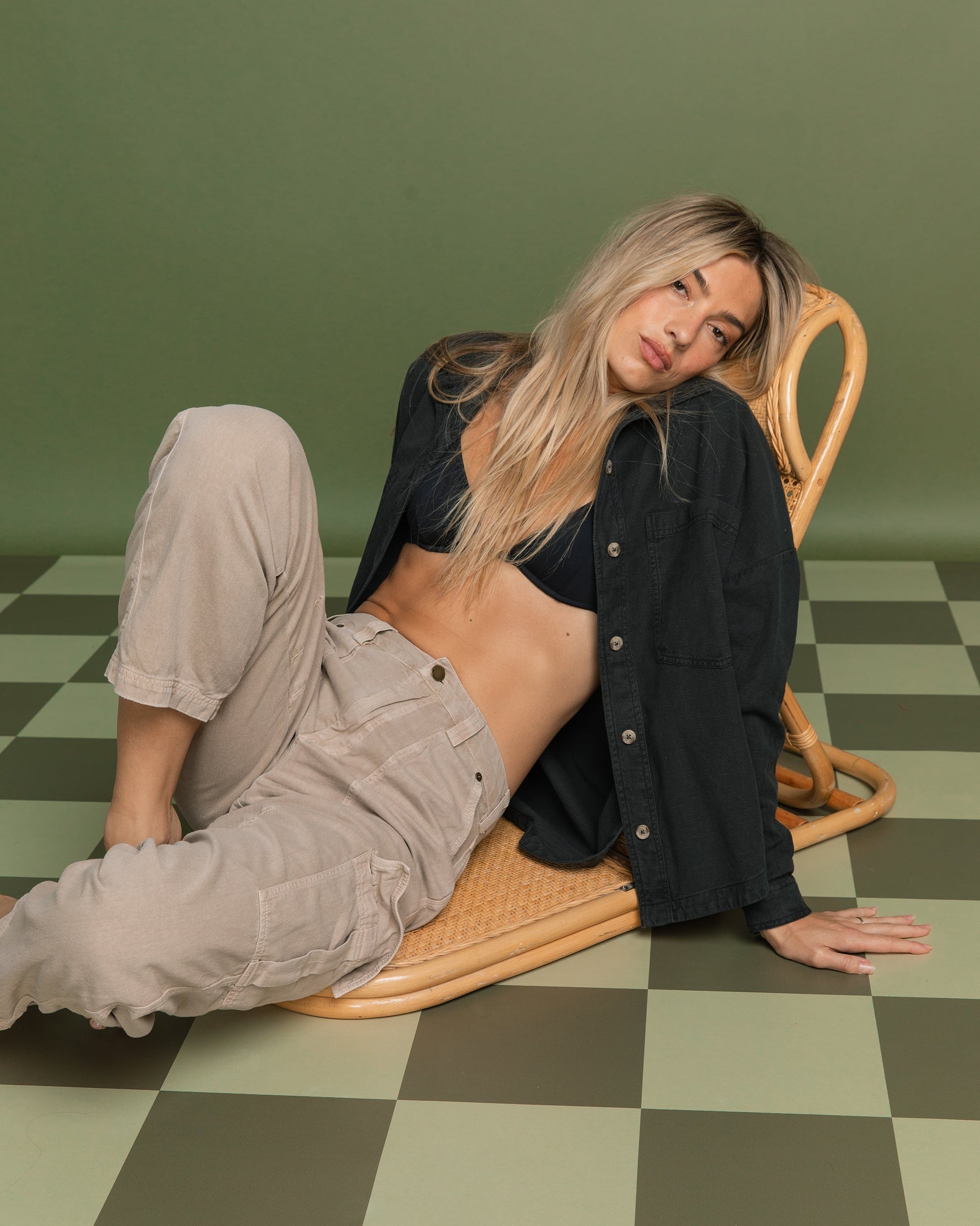 A laid-back staple for any season, the Everytime oversized shacket has chest and on-seam pockets plus long sleeves and a collar neck. Its cotton-poly blend fabric and front buttons make it comfortable and convenient, perfect for lounging at home or running errands. Featured here in the Black Sands colorway.