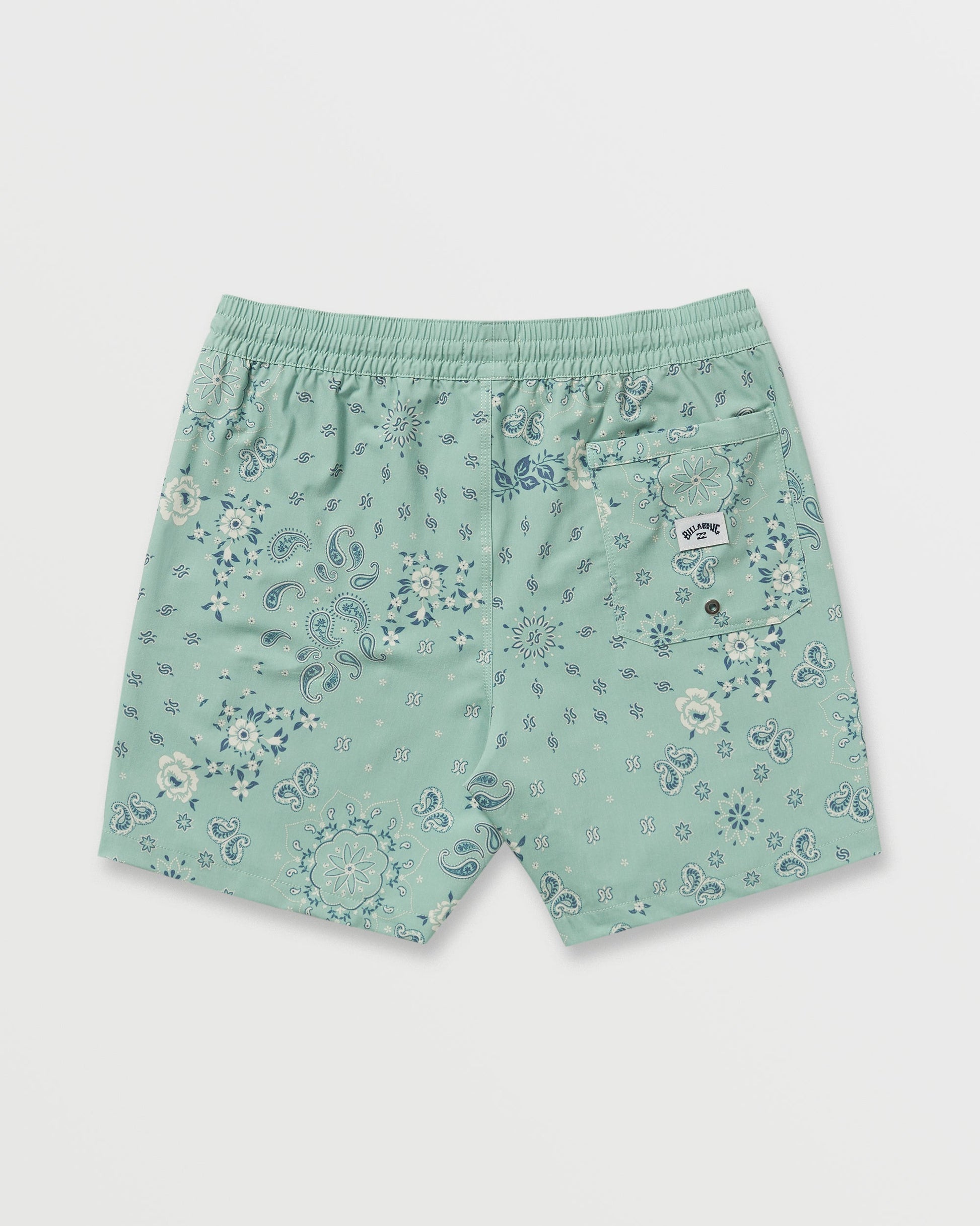 Our comfy layback trunks keep things easy with a 16-inch length and elastic waist. Pro stretch fabric moves with you, while side and back pockets hold essentials for spontaneous summer adventures. Featured here in the Green colorway.