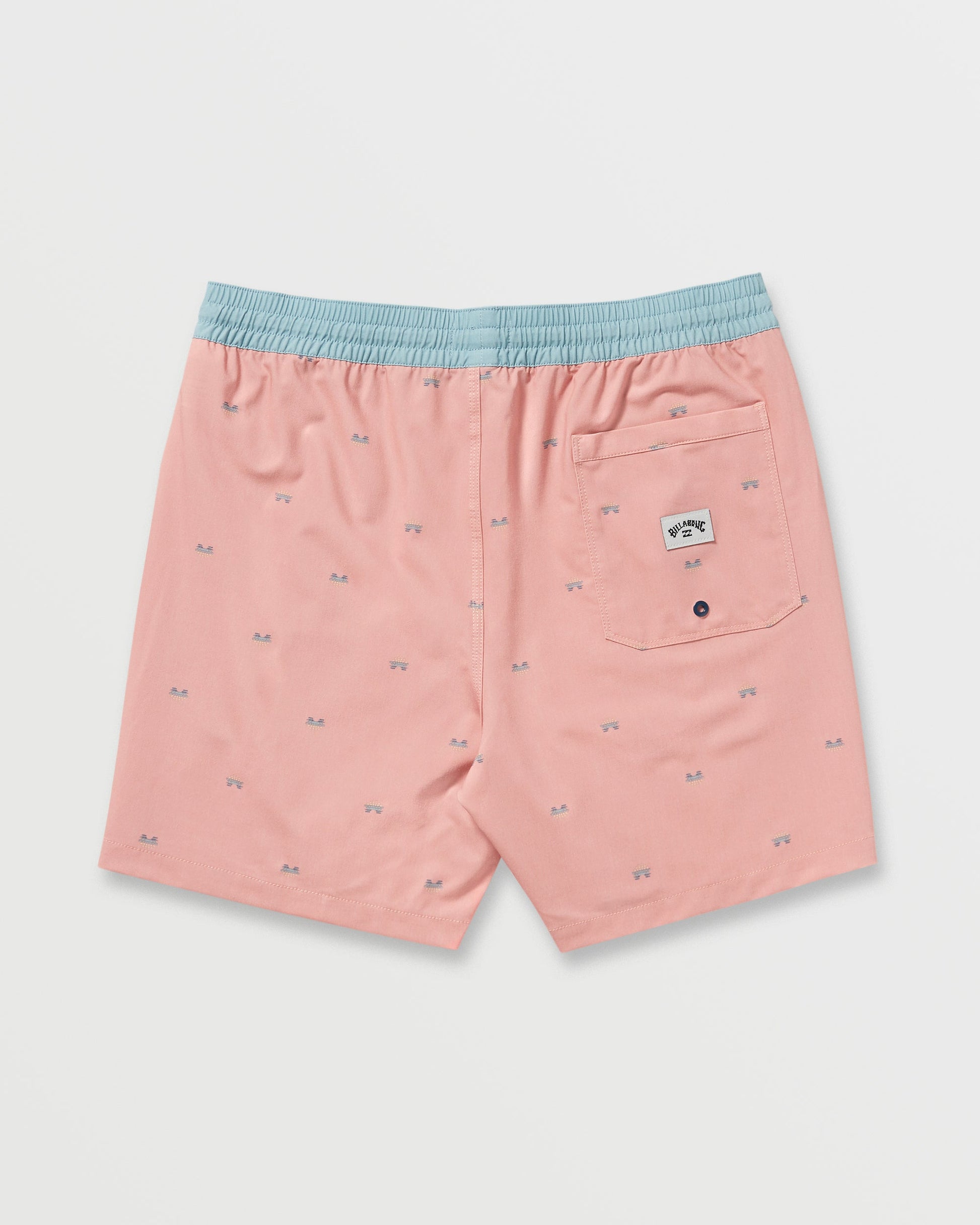 Our comfy layback trunks keep things easy with a 16-inch length and elastic waist. Pro stretch fabric moves with you, while side and back pockets hold essentials for spontaneous summer adventures. Featured here in the Pink colorway.