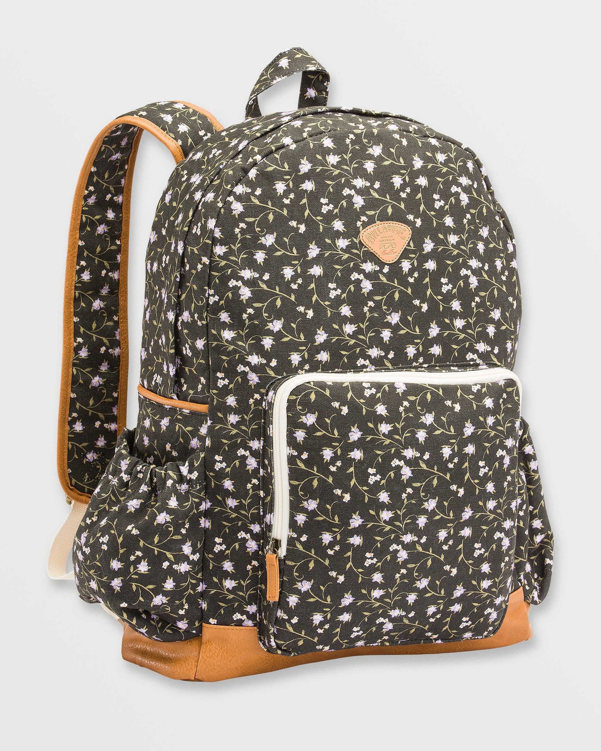 Travel in style with the Billabong Home Abroad backpack. This cotton-canvas 20L pack boasts a spacious main compartment, padded laptop sleeve, and branded vegan leather accents. Adjustable straps and side compression pockets offer hands-free convenience. Featured here in the Violet Ice colorway.