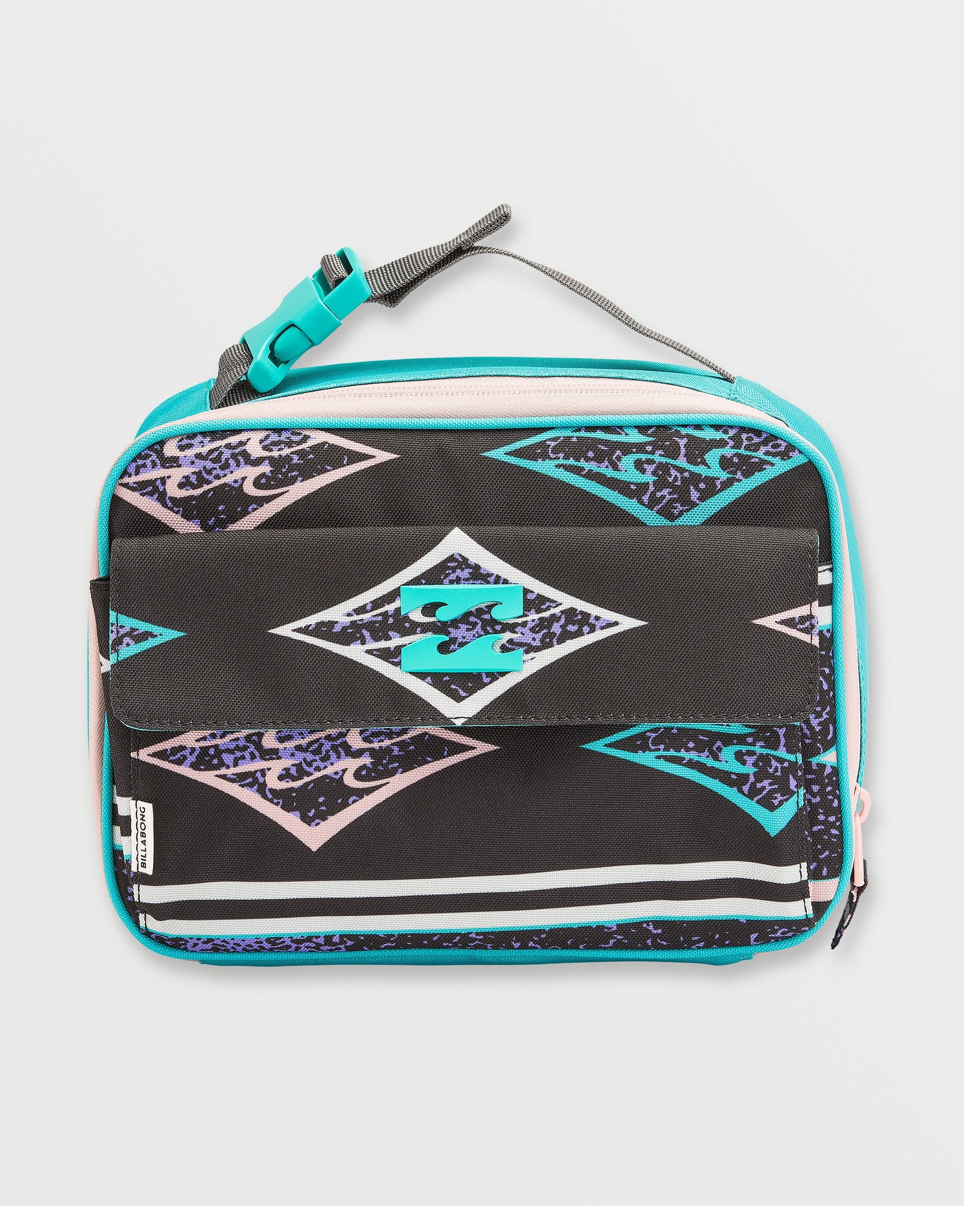 Take your fresh food fix on the road with our Billabong insulated Lil Chill lunchbox. Compact yet mighty, this polyester pack keeps meals chilled thanks to its thermal liner. A branded look complements its functional front pocket and handle for stylish portability everywhere. Featured here in the Off Black colorway.