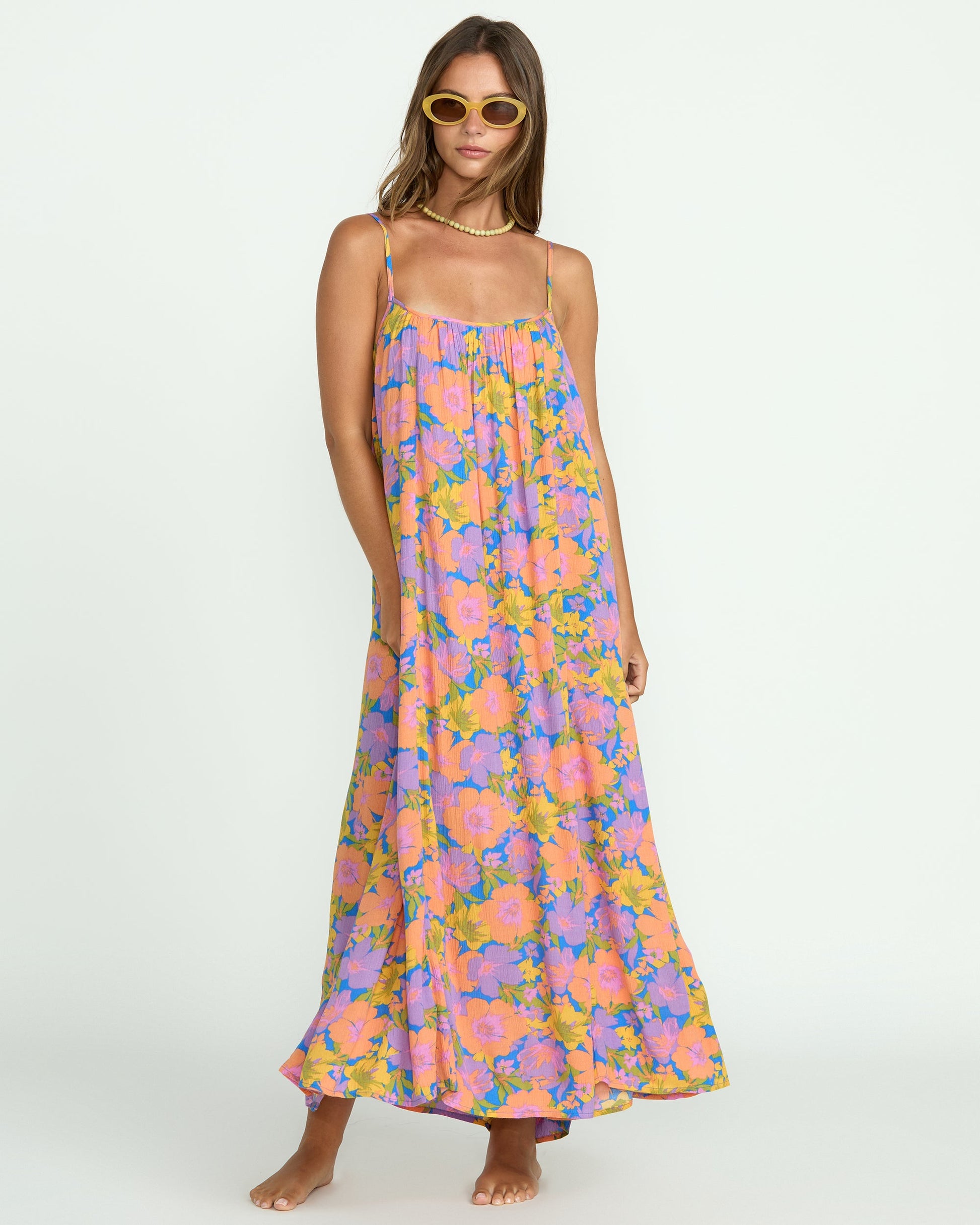 Our Billabong breezy viscose midi dress boasts crinkled texture and floaty fit-perfect for slipping over swimsuits or wearing casually.