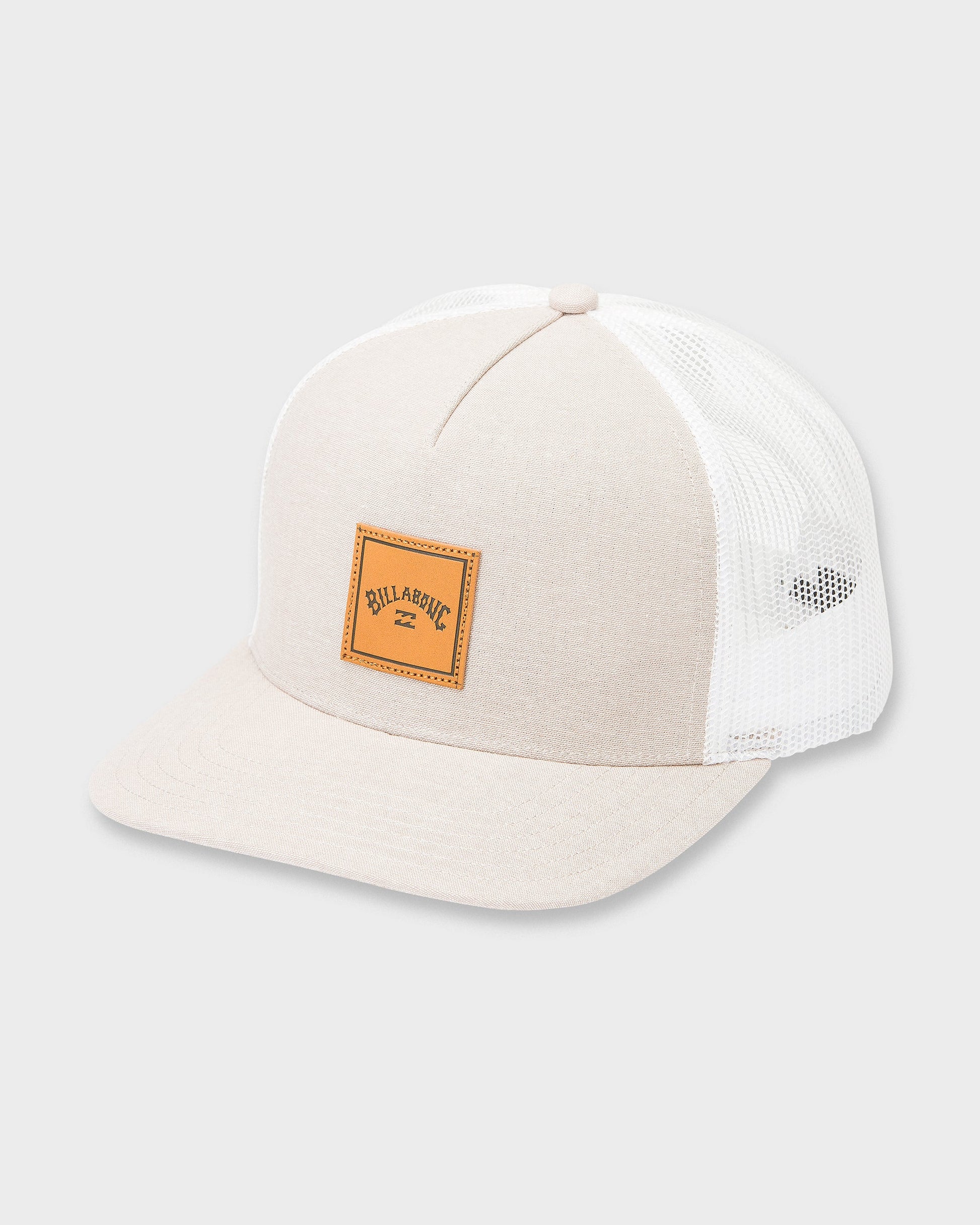 The perfect hat for your weekend adventures. The poly-cotton twill fabric, 5-panel construction, and curved visor give the Stacked trucker a classic look that's ready for anything. Featured here in the Sand colorway.