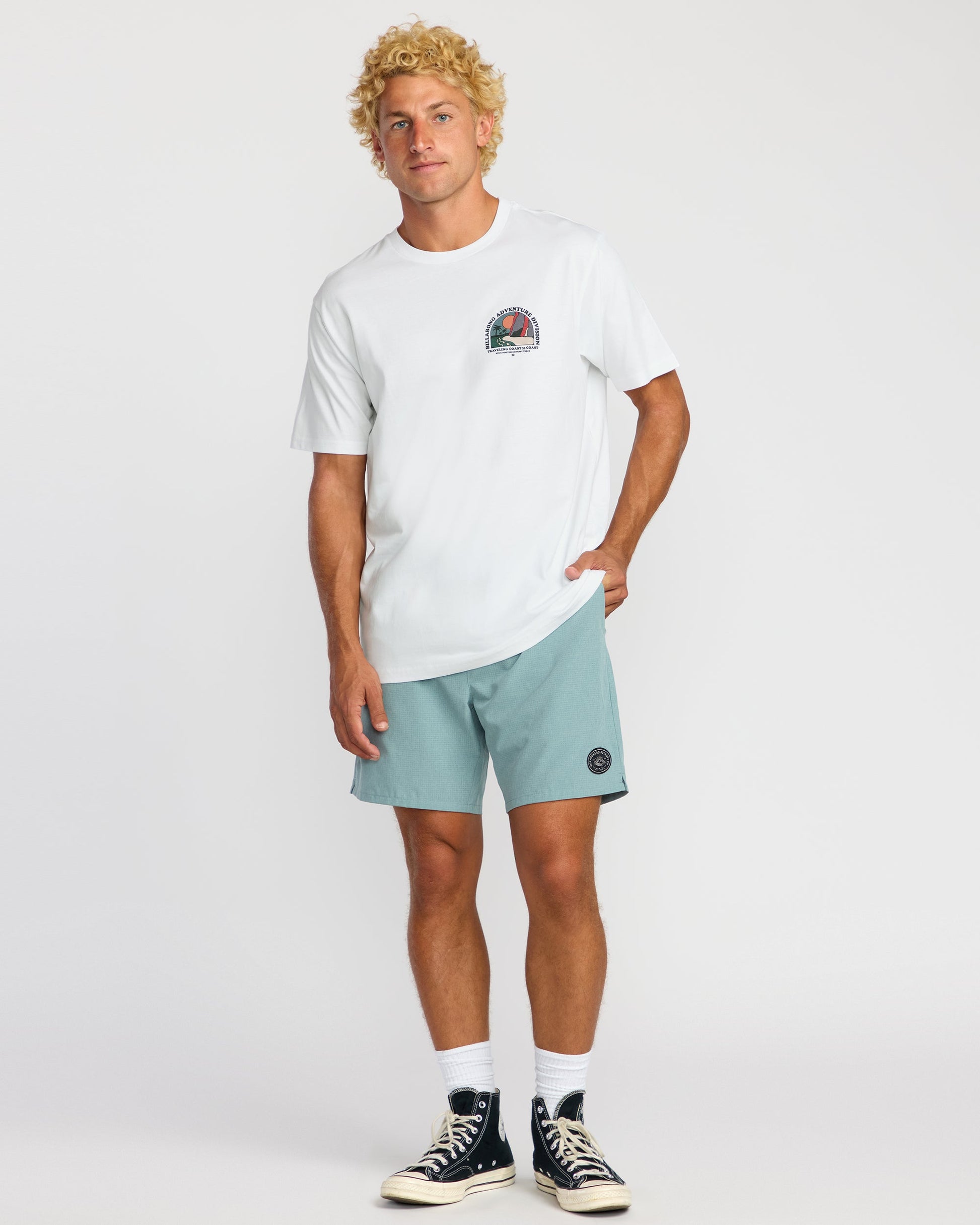 Crafted from pure organic cotton and softened with a special wash, our core fit short sleeve t-shirt keeps things effortlessly cool. Clean screen prints on the front and sleeves add subtle style. Featured here in the White colorway.