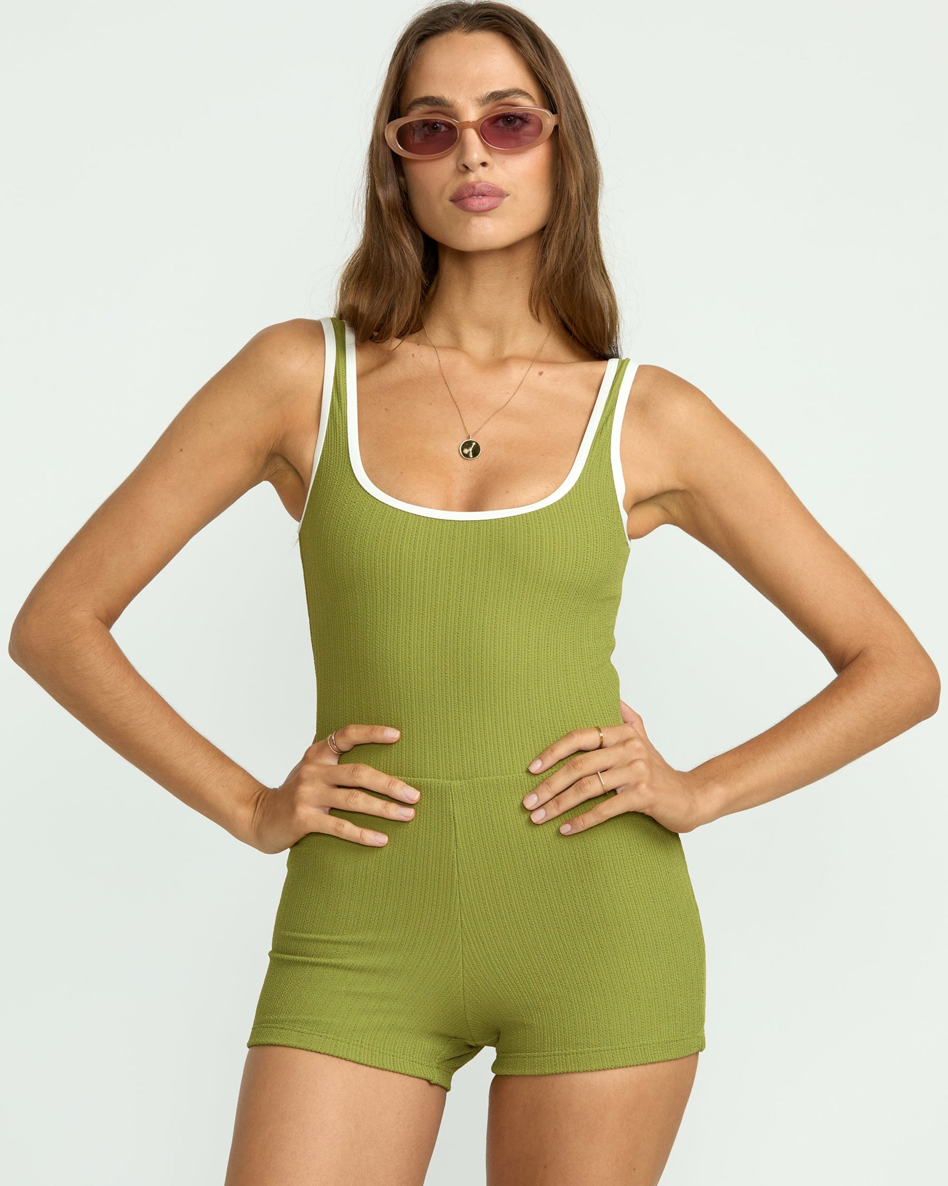 Sunrays Retro One-Piece Surf Suit - Ranger Green